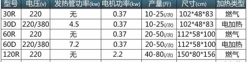 名稱炒貨機(jī) 電源 功率 產(chǎn)量 尺寸 重量 規(guī)格 其他