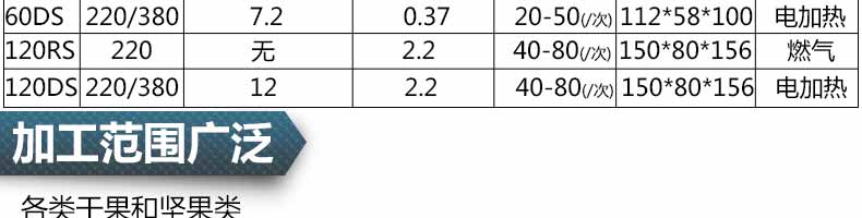 1.炒貨機(jī)有30型.60型.120型三種,每個(gè)型號(hào)各有燃?xì)饧訜岷碗娂訜醿煞N方式。