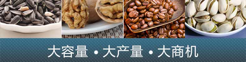 7.適合加工各種干果和堅(jiān)果類,如;板栗、花生、瓜子、松籽、榛子、杏仁、菜籽、咖啡豆、紅棗、芝麻、、核桃、各種豆類、麥類、米類等。適用于在各大商場、超市、食品專賣店、連鎖店、街道小吃等人口密集區(qū)等處定點(diǎn)經(jīng)營和加工。是您創(chuàng)業(yè)致富的好幫手。