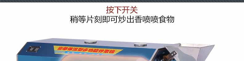 8.炒貨機(jī)結(jié)構(gòu)合理,操作簡單,熱效率高,所炒制食物非常均勻、口感良好!