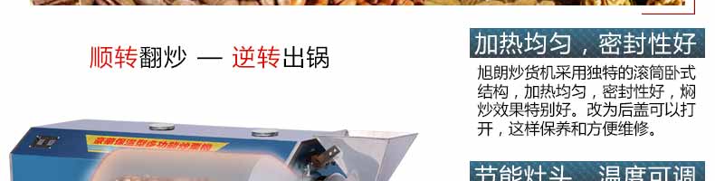 3.用氣加熱的炒貨機(jī)配有節(jié)能灶頭,可調(diào)節(jié)火力大小。用電加熱的炒貨機(jī)帶有溫控儀,可任意調(diào)節(jié)溫度。