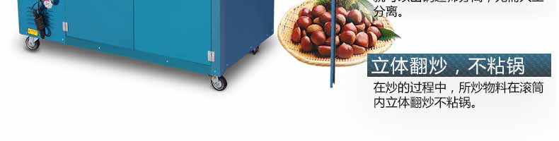 5.在炒的過程中,所炒物料在滾筒內(nèi)立體翻炒不粘鍋。