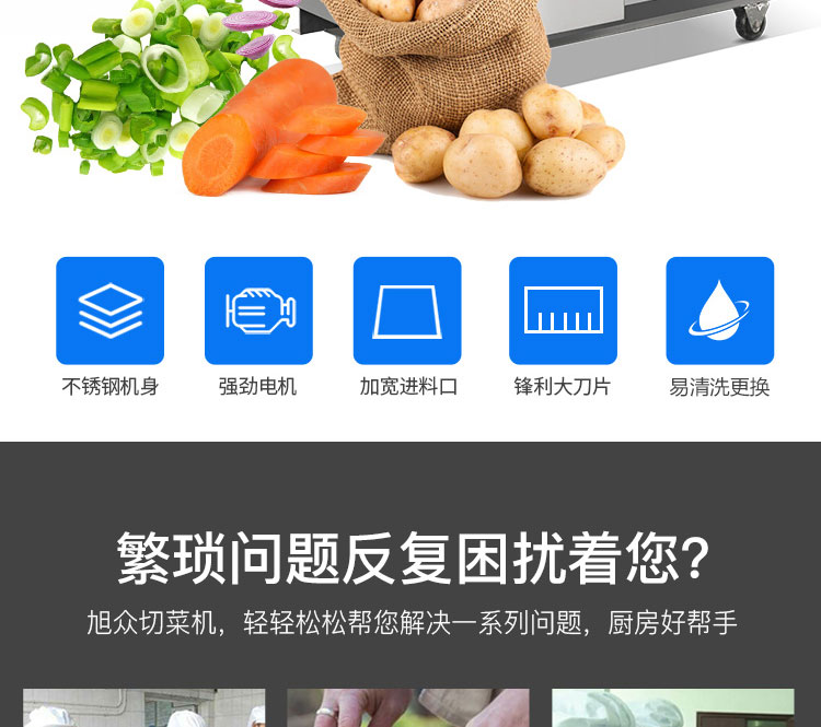 作者:杭州旭眾發(fā)布時間:2017-04-15 11:42查看數(shù):您當(dāng)前的位置:首頁>>產(chǎn)品展示>>蔬菜加工系列>>多功能切菜機