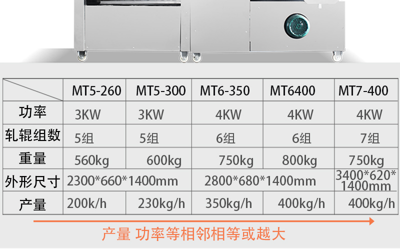 產量 | 250kg/h | 260kg/h | 300kg/h |