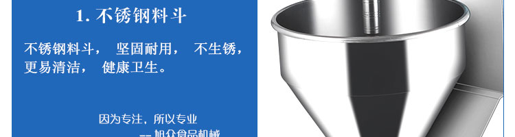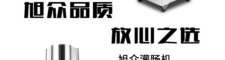旭眾牌SZ-200灌腸機使用敞開式不銹鋼料斗,適用于連續(xù)添加物料;與灌裝手接觸部件全部采用優(yōu)質(zhì)不銹鋼制作以防生銹;該機自動化程度高,技術(shù)先進、性能穩(wěn)定、操作簡便、工作效率高,具有不破壞物料成份,保質(zhì)、保鮮等特點。