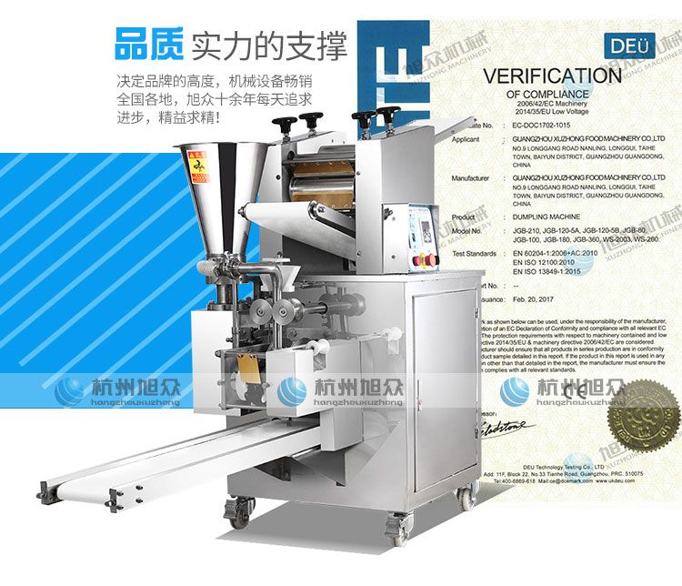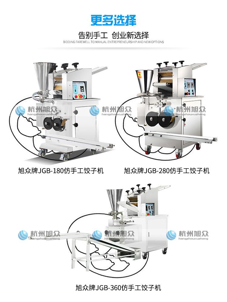 旭眾牌JGB-210型仿手工餃子機是我公司研發(fā)生產(chǎn)的先進自動餃子生產(chǎn)設(shè)備。本機采用自動壓面皮包餃子的新工藝技術(shù),克服了舊式餃子機絞龍強力擠壓而帶來的對面筋的損傷,面團不會發(fā)熱,不會糊化,餃子口感佳。