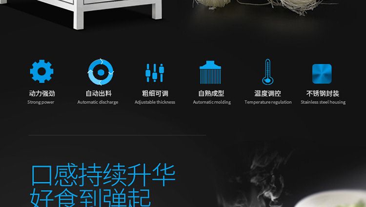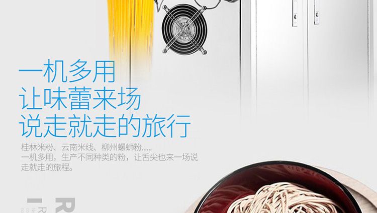 名稱一步成型米粉機(jī) 電源220/380V 功率4kw 產(chǎn)量20kg/h 尺寸990×430×1240mm 重量150kg 規(guī)格0.8~20mm 其他