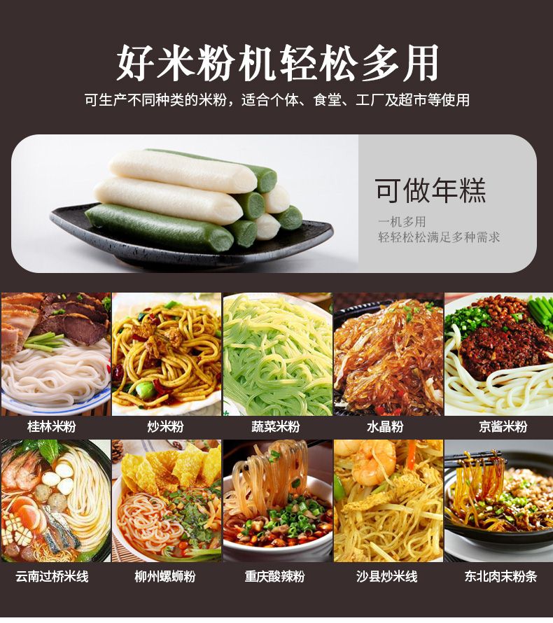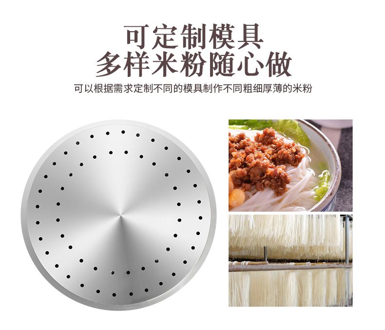 ◆ 米粉機(jī)生產(chǎn)多樣性可生產(chǎn)米粉、米線、粉絲、粉條、年糕、玉米面條、各種雜糧粉絲、各種面條、雜糧面條、彩色面條以及以紅薯、玉米、大豆、蠶豆等制成淀粉為原料的等多種食品而且每種食品厚薄、粗細(xì)等規(guī)格可根據(jù)需要任意調(diào)整。