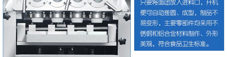 ◆采用圓盤擠壓搓圓技術(shù),結(jié)合面點工藝要求,使得制品外形美觀,大小均勻,表面光亮細膩、口感柔滑,彈韌性佳;