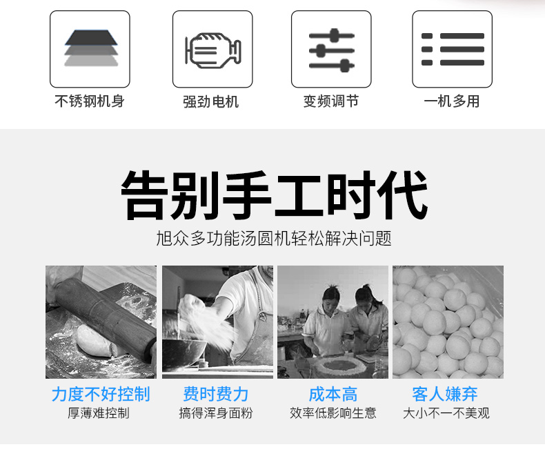旭眾牌VFD-1200無(wú)餡湯圓機(jī)又稱珍珠湯圓機(jī)、桂花湯圓機(jī)。