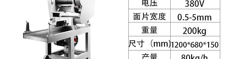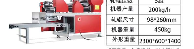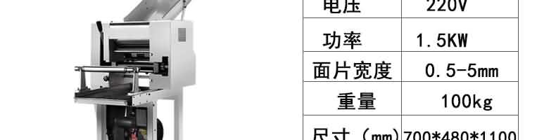 名稱RQJ-60型豪華壓面面條機 電源220/380V 功率1.5/2.2kw 產(chǎn)量60-80kg/h 尺寸1000*510*1180mm 重量111kg 規(guī)格厚度0.6-20mm 其他