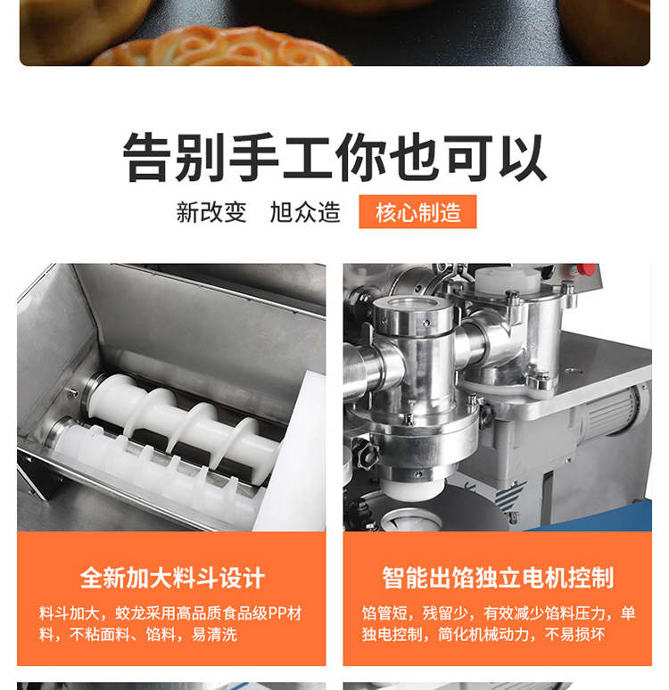 5.料斗加大,蛟龍采用高品質(zhì)食品級PP材料,不粘面料、餡料,易清洗;