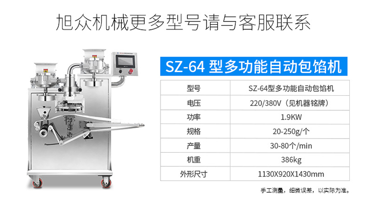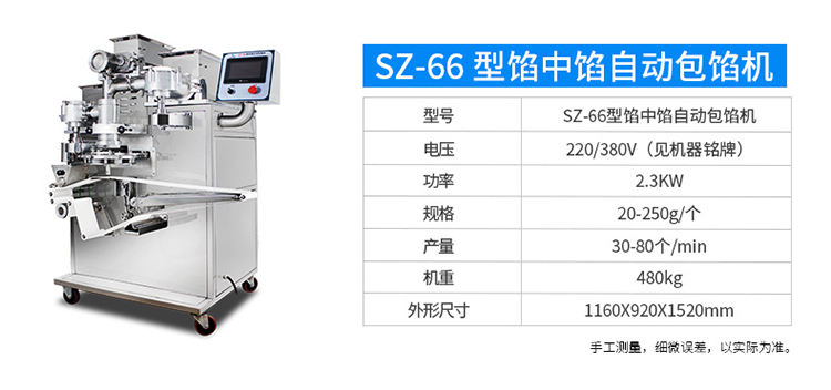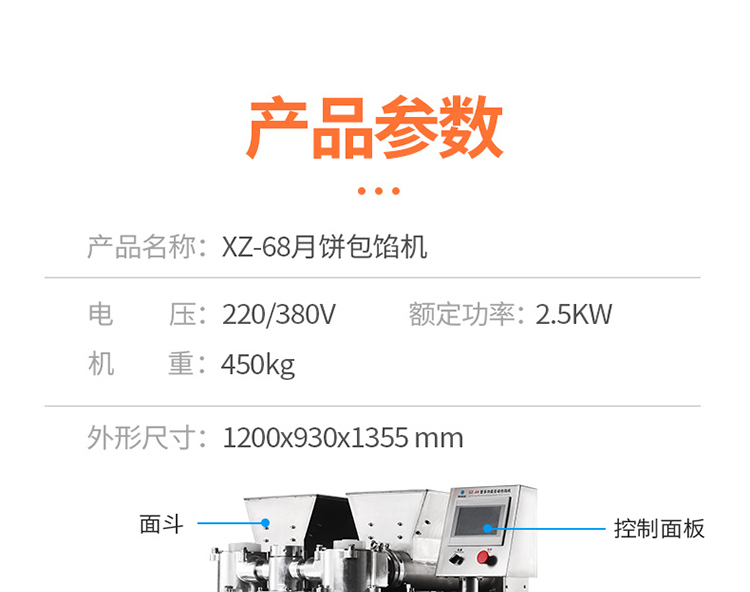 名稱XZ-68月餅自動包餡機 電源220/380V 功率2.5kw 產(chǎn)量 尺寸1200×930×1355mm 重量450kg 規(guī)格 其他
