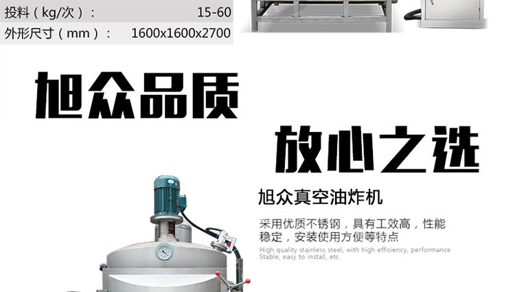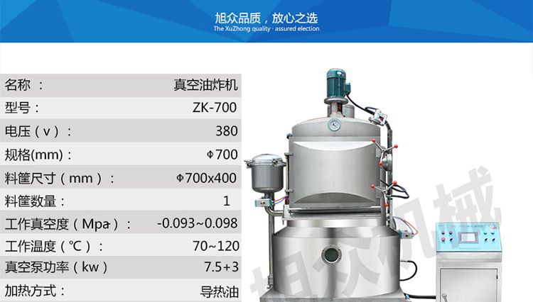 作者:杭州旭眾發(fā)布時(shí)間:2017-04-15 11:42查看數(shù):您當(dāng)前的位置:首頁(yè)>>產(chǎn)品展示>>油炸機(jī)和榨油機(jī)系列>>真空油炸機(jī)