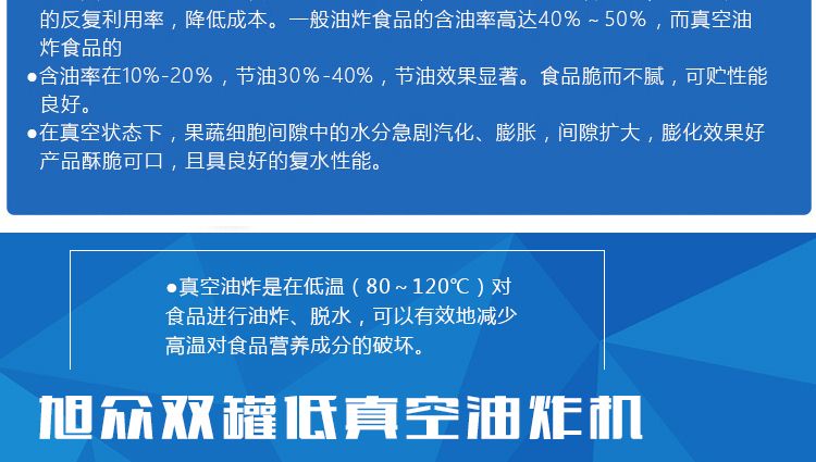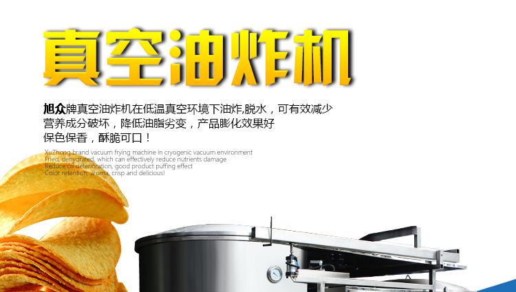 ●真空油炸是在低溫(80~120℃)對食品進(jìn)行油炸、脫水,可以有效地減少高溫對食品營養(yǎng)成分的破壞。